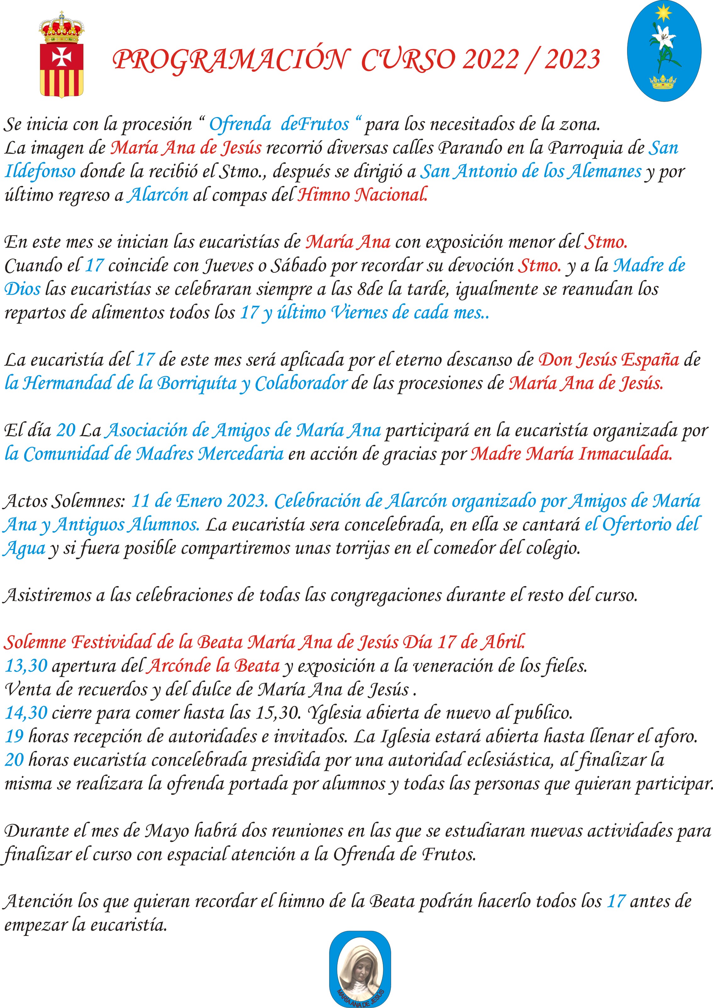 17 Abril 2023 festividad de María Ana de Jesús